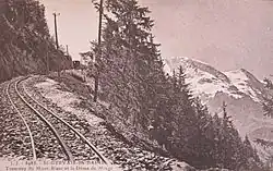 Une rame du TMB arrivée au Nid d'Aigle à 2 372 m en , alors terminus de la ligne. | ||||||||||||||||||||||||||||||||||||||||||||||||||||||||||||||||||||||||||||||||||||||||||||||||||||||||||||||||||||||||||