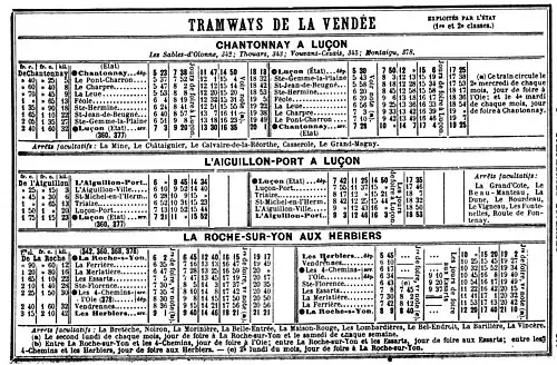 - Convention du , correspond à une mise sous tutelle de la Compagnie des Tramways de la Vendée, qui devient une « filiale » de l'Administration des chemins de fer de l'État[1].