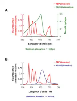B. Spectres d’émission du cryptate d’europium TBP et de la XL665.