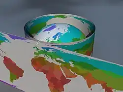 Un exemple de transformation équiaréale est la projection, dite isocylindrique, de la sphère unité x2 + y2 + z2 = 1 privée des deux pôles , orthogonalement sur le cylindre unité x2 + y2 = 1 [1] . Une formule explicite est