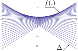 D'après la définition de la transformée de Legendre, la courbe de la fonction f est l'enveloppe de ces droites.