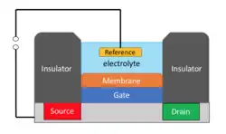 Il a une structure similaire au MOSFET, où la charge sur l'électrode d'entrée est appliquée par un procédé chimique.
