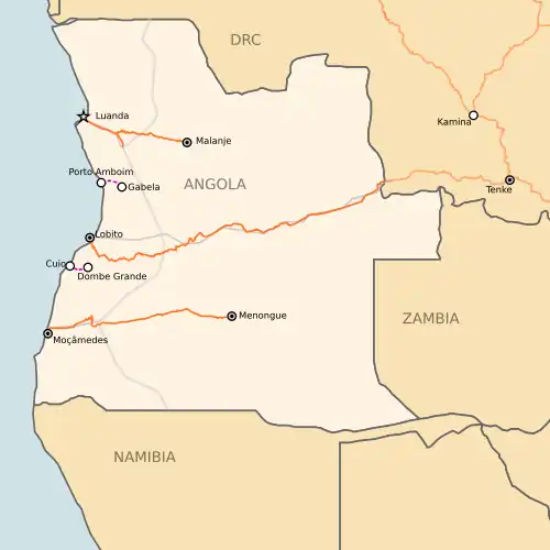 L'Angola dispose d'un réseau de chemin de fer composé de lignes isolées les unes des autres, fruit du passé colonial. Longtemps paralysé par la guerre civile, il est aujourd'hui en cours de reconstruction.