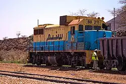 Les trains, dont la longueur peut atteindre 2,5 km[2], sont constitués de 3 ou 4 locomotives diesel-électrique General Motors de 3 300 ch, de 200 à 210 wagons-trémies pour le minerai de fer, d'une charge utile de 84 tonnes, et d'un nombre variable de wagons de service. Six nouvelles locomotives perfectionnées et encore plus puissantes type SD-70-ACS de 4 500 ch construites par EMD (La Grange, Illinois) sont arrivées en 2013 en renfort de l'ancien parc.