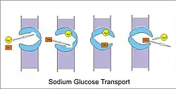 Ces protéines utilisent l'énergie créée par le gradient de sodium pour transporter le glucose à travers la membrane apicale contre le gradient de glucose. Ainsi, ces cotransporteurs sont un exemple de transport actif secondaire. Le GLUT permet ensuite au glucose de traverser la membrane basolatérale (en) vers les capillaires péritubulaires. SGLT1 et SGLT2 sont connus tous les deux comme étant des symports puisque le sodium et le glucose sont transportés dans la même direction à travers la membrane.