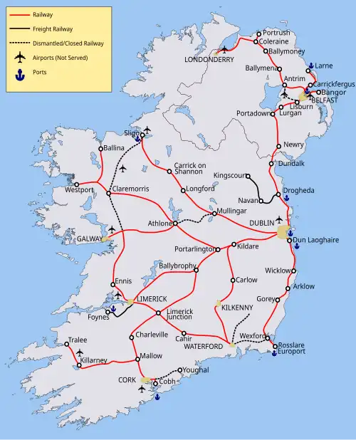Voir aussi : Transport ferroviaire en Irlande