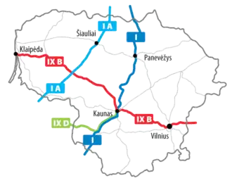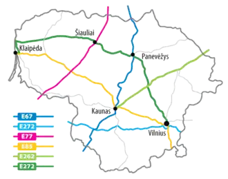 Routes magistrales lituaniennes faisant partie du réseau transeuropéen de transport.