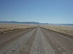Sur la route C13 vers Helmeringhausen depuis Aus.11,460 kilomètres de routes en terre battue. Ces routes sont construites en défrichant la végétation et en nivelant la surface. Le compactage est assuré par la circulation. Certaines de ces routes ne sont pas nivelées, mais simplement constituées de pistes de terre ou de sable séparées par de la végétation. Ces pistes sont utilisées là où moins de cinq véhicules sont attendus quotidiennement.