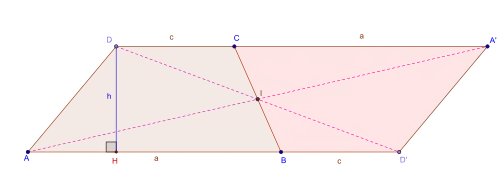 - ↑ Si le trapèze est un parallélogramme (c = a, d = b), la connaissance des quatre côtés ne suffit pas à déterminer les diagonales. La règle du parallélogramme donne seulement : p2 + q2 = 2a2 + 2b2.