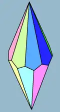 Dans le cas du dual d'un antiprisme régulier triangulaire, les cerfs-volants sont des losanges, par conséquent, ces antidiamants sont aussi des zonoèdres. Ils sont appelés rhomboèdres. Ce sont des cubes allongés dans la direction d'une diagonale. Ce sont aussi des parallélépipèdes avec des faces losanges isométriques.