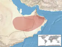 Cette espèce se rencontre en Arabie saoudite, au Yémen, en Oman et aux Émirats arabes unis[2].