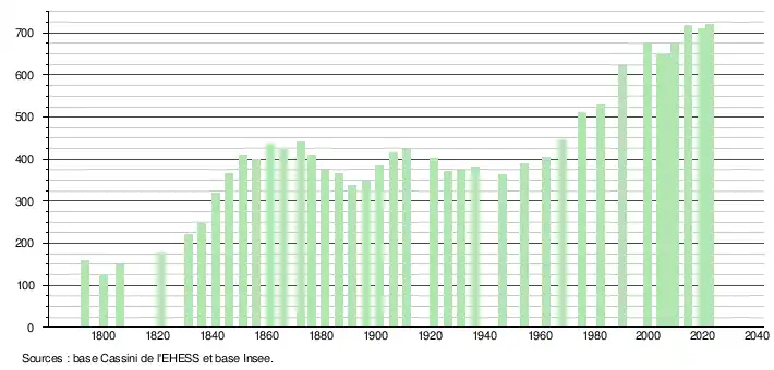 - ↑ Population municipale de référence en vigueur au 1er janvier 2025, millésimée 2022, définie dans les limites territoriales en vigueur au 1er janvier 2024, date de référence statistique : 1er janvier 2022.