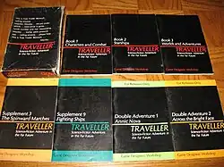 NB : Le jeu Traveller 2300AD ne se déroule pas dans l'univers de Traveller mais dans le futur de celui de Twilight 2000. Il fut ensuite réédité sous le titre moins trompeur de 2300AD.