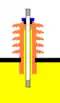 Supposons que l'on traverse une paroi avec un simple isolateur classique (voir schéma). Sur la surface de celui-ci à une extrémité on a le potentiel U, au centre un potentiel nul. La capacité surfacique étant plus élevée que la capacité à travers l'isolant, on obtient une répartition de la tension suivante :