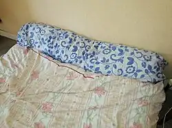 Le traversin se compose généralement d'une enveloppe fine de tissu, rembourrée d'une matière moelleuse.