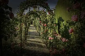 Pour la culture en pergola ou contre un mur, il est également nécessaire de guider les lianes de la vigne avec des montants solides (pour la pergola) ou des supports auxquels la vigne puisse s'agripper et croitre (pour un mur)