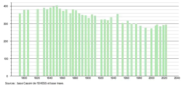 - ↑ Fiches Insee - Populations de référence de la commune pour les années 2006, 2007, 2008, 2009, 2010, 2011, 2012, 2013, 2014, 2015, 2016, 2017, 2018, 2019, 2020, 2021 et 2022.