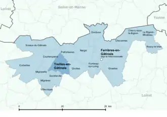 - ↑ « Rattachements administratifs de la commune de Treilles-en-Gâtinais », sur le site de l'Insee (consulté le ).