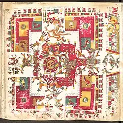 La feuille IV du Codex Vaticanus A ou Codex Rios, fait état d'un total de douze cieux distribués et organisés en groupes. Neuf sont attribués à des plans sacrés où résident des divinités, deux espaces sont placés juste au-dessus du monde terrestre, et au-dessus de tous ces espaces un être divin préside la scène.