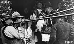 Le trembita était principalement utilisé par les montagnards connus sous le nom de Houtsoules et Gorals dans les Carpates. Il était utilisé comme dispositif de signalisation pour annoncer les décès, les funérailles, les mariages.