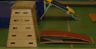 En gymnastique, un tremplin est un équipement comportant une planche souple et inclinée, sur laquelle les gymnastes bondissent pour s'élancer et faire des sauts.