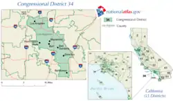 Le 34e district congressionnel de Californie est un district situé en Californie. Situé dans le Comté de Los Angeles, le district est représenté par le Démocrate Jimmy Gomez. Son précédent Représentant, le Démocrate Xavier Becerra de Los Angeles, a démissionné le 24 janvier 2017 pour devenir Procureur général de Californie. Le Représentant Gomez a remporté une élection spéciale le 6 juin 2017, battant son compatriote Démocrate Robert Lee Ahn pour remplacer Becerra[1]. Il a ensuite prêté serment en tant que Représentant du district le 11 juillet 2017[2].