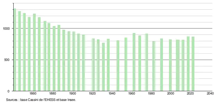 - ↑ Population municipale de référence en vigueur au 1er janvier 2025, millésimée 2022, définie dans les limites territoriales en vigueur au 1er janvier 2024, date de référence statistique : 1er janvier 2022.