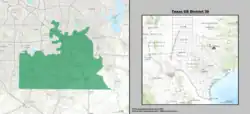 Le 30e district congressionnel du Texas couvre une grande partie de la ville de Dallas et d'autres parties des comtés de Dallas et de Tarrant (principalement des zones à majorité noire et hispanique). Le district comprend l'Université du Nord du Texas à Dallas, l'UNT Law et la Texas Women's University à Dallas. Le 30e district abrite également l'Aéroport de Dallas Love Field et le Centre Médical Southwestern de l'Université du Texas.