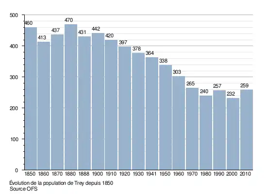 [xls], sur Office fédéral de la statistique (consulté le ). - ↑ Gilbert Marion, « Trey » dans le Dictionnaire historique de la Suisse en ligne, version du . consulté le 13 octobre 2012