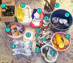 - ↑ Montpellier (Hérault, France), par exemple, a choisi la couleur orange pour les conteneurs destinés à recueillir les fermentescibles, tandis qu'ils sont marron dans d'autres communes.