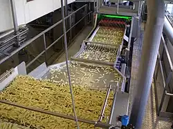 Un cinquième type de plate-forme de tri, appelé système automatisé d’élimination des défauts (ADR), est spécifiquement destiné aux lanières de pommes de terre (frites). Contrairement à d’autres trieurs qui éjectent les produits présentant des défauts de la ligne de production, les systèmes ADR identifient les défauts et les éliminent réellement des bandes. La combinaison d’un système ADR suivi d’une calibreuse mécanique est un autre type de système de tri optique car il utilise des capteurs optiques pour identifier et éliminer les défauts.