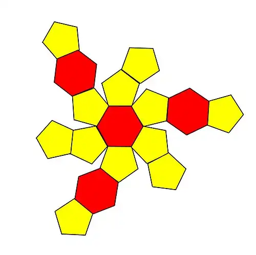 Un polyèdre topologiquement équivalent peut être construit en utilisant 12 pentagones réguliers et 4 hexagones réguliers (mais les faces hexagonales seront très légèrement ondulées en raison de l'inexactitude des angles).