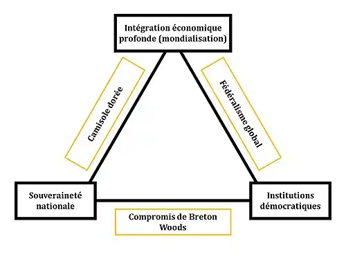 - ↑ « Nationalisme, démocratie et intégration économique : le triangle d'incompatibilité de Rodrik [Dani Rodrik] », sur captaineconomics.fr (consulté le ).