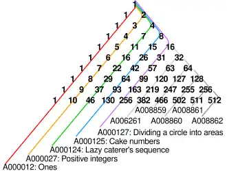 - ↑ (en) « Maximal number of regions obtained by joining n points around a circle by straight lines », sur OEIS