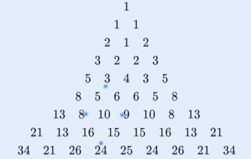 Le triangle de Hosoya (dénommé aussi triangle de Fibonacci comme dans A058071) est un tableau triangulaire de nombres (similaire au triangle de Pascal) basé sur la suite de Fibonacci. Le triangle étant présenté sous forme pyramidale, chaque nombre est la somme des deux nombres des deux lignes précédentes, pris dans la diagonale gauche, ou dans la diagonale droite[1].