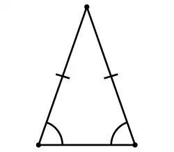 En géométrie, un triangle isocèle est un triangle ayant au moins[1] deux côtés de même longueur. Plus précisément, un triangle ABC est dit isocèle en A lorsque les longueurs AB et AC sont égales. A est alors le sommet principal du triangle et [BC] sa base.