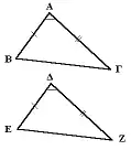 Cela correspond à l'idée de triangles superposables. L'importance que peut avoir cette notion vient du fait qu'elle traduit une forme d'homogénéité du plan euclidien[1].