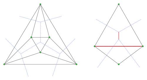 Dans une triangulation de Pitteway, chaque arête pq soit appartient à l'enveloppe convexe, soit coupe l'une des arêtes du diagramme de Voronoi séparant les cellules contenant les points p et q, c'est-à-dire le dual à la triangulation. Pour certaines sources, cette propriété est utilisée pour définir une triangulation de Pitteway comme une triangulation de Delaunay dans laquelle toutes les arêtes internes coupent leur arête duale dans le diagramme de Voronoi. Les arêtes externes peuvent ne pas couper leurs duales[3].