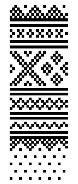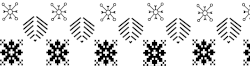 Les éléments décoratifs qui servent essentiellement aux bandes ou frises à l'encolure, aux bordures inférieures ou pour délimiter par des lignes séparatrices les motifs plus gros au niveau de la poitrine vont du plus simple comme des points rudimentaires d'une seule maille, parfois organisés en 4 ou 5 comme des dés, aux plus complexes comme des rangées de danseurs ou de rennes.