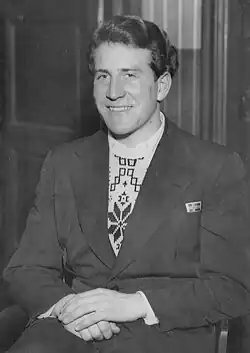 Champion de ski[32], il utilise sa notoriété de sportif polyvalent et d'acteur talentueux dans les films et pour les séances photos de magazines. Portant des modèles de pull-over inspirés des motifs traditionnels, il vend bien l'image d'une nation jeune, dynamique en représent son pays dans le monde du sport. Son environnement familial lui est favorable car sa mère Birgit Eriksen pratique également le tricot traditionnel et a créé le motif Cortina[33].