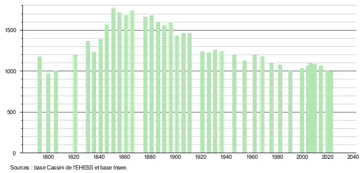 - ↑ Fiches Insee - Populations de référence de la commune pour les années 2006, 2007, 2008, 2009, 2010, 2011, 2012, 2013, 2014, 2015, 2016, 2017, 2018, 2019, 2020, 2021 et 2022.