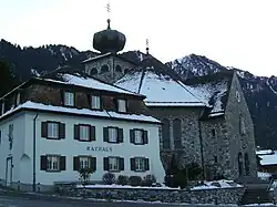 Construit en 1767-68 pour servir de presbytère, l'hôtel de ville est classé monument historique depuis le . Avant le financement du bâtiment par le prince Wenceslas de Liechtenstein, les habitants du village dépendaient des paroisses de Schaan et Triesen. Un nouveau presbytère fut inauguré en 1964-65, et l'édifice abrita la succursale d'une fabrique de prothèses dentaires (Ivoclar) de février 1966 à novembre 1967. L'administration communale s'y installa après de nouveaux travaux, en 1968.
