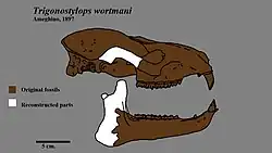 Un crâne complet de l'espèce type, Trigonostylops wortmani, a été découvert et classé comme un Astrapotheria en se basant sur ses grandes défenses inférieures, en comparaison avec le genre plus récent Astrapotherium.