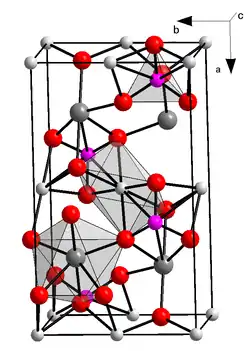 | Réseau de Bravais | a = 6,0285(6) Å, b = 10,3586(9) Å, c = 4,7031(3) Å, Z = 4 |