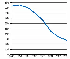 | 1 029 | 1 052 | 999 | 877 | 720 | 493 | 372[2] | 302[1] |