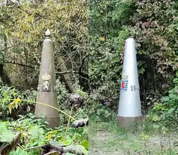 La borne frontière belge dans les orties, en 2007.