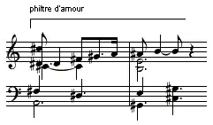 Cette idée se retrouve particulièrement dans le célèbre accord de Tristan : son instabilité tonale peut alors traduire l'amour impossible entre les deux protagonistes, cette envie permanente mais irréalisable. Ce n'est qu'après la Liebestod d'Isolde que l'accord se résout. Le parachèvement de l'amour des deux personnages ne se fait que dans la mort : il leur est donc impossible d'assouvir leurs désirs sur Terre[12].