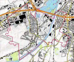 L'occupation des sols de la commune, telle qu'elle ressort de la base de données européenne d'occupation biophysique des sols Corine Land Cover (CLC), est marquée par l'importance des territoires artificialisés (84,2 % en 2018), en augmentation par rapport à 1990 (80,6 %). La répartition détaillée en 2018 est la suivante : zones industrielles ou commerciales et réseaux de communication (50,4 %), zones urbanisées (33,9 %), zones agricoles hétérogènes (11 %), terres arables (4,1 %), prairies (0,7 %)[21]. L'évolution de l'occupation des sols de la commune et de ses infrastructures peut être observée sur les différentes représentations cartographiques du territoire : la carte de Cassini (XVIIIe siècle), la carte d'état-major (1820-1866) et les cartes ou photos aériennes de l'IGN pour la période actuelle (1950 à aujourd'hui)[Carte 3].