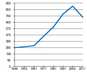 | 282 | 294 | 312 | 457 | 592 | 787 | 909[2] | 739[1] |