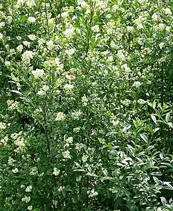 Il forme des buissons (jusqu'à 5 m. de hauteur) dont la cime s'arrondit avec l'âge, s'il n'est pas taillé.